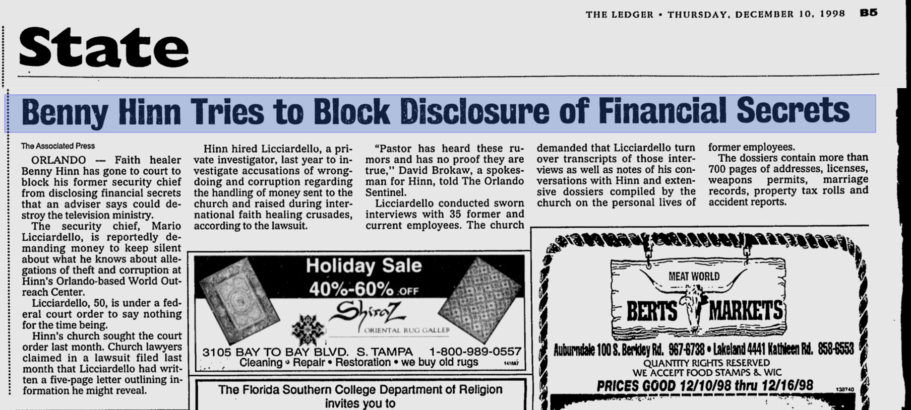 Source: The Lakeland Ledger | 10 December 1998 | news.google.com